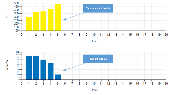 As the roast progresses, each trigger point activates its burner setting in order, continuing until burner value reaches zero. From there, the system maintains operation until the End of Roast temperature is reached.