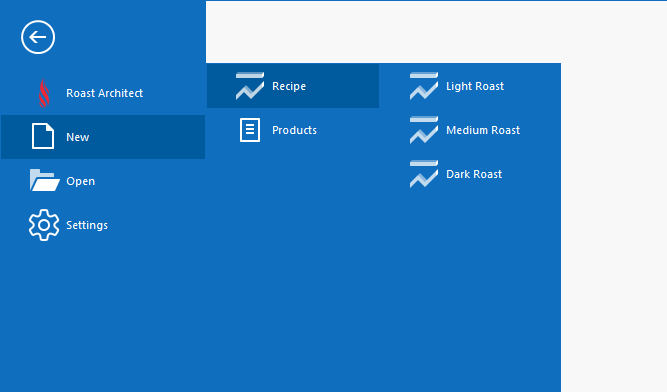 - Select Recipe, then choose from the templates: Light Roast, Medium Roast, Dark Roast