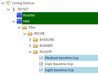 - The File will be highlighted blue, indicating that it is open in Roast Architect. The Quick Access Bar will display the file name preceded by Remote File, indicating you are editing the file on the Roaster