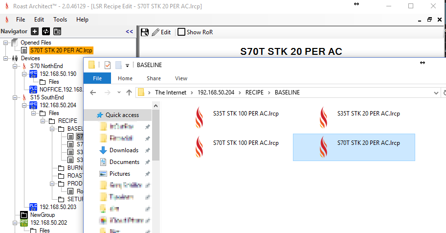 icon. This indicates that the folder contains a PLC and a Screen which when combined designates a v2 S-Series Roaster. The v1 series does not change its icon and retains the default Device Group icon