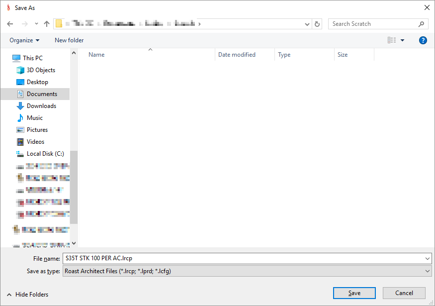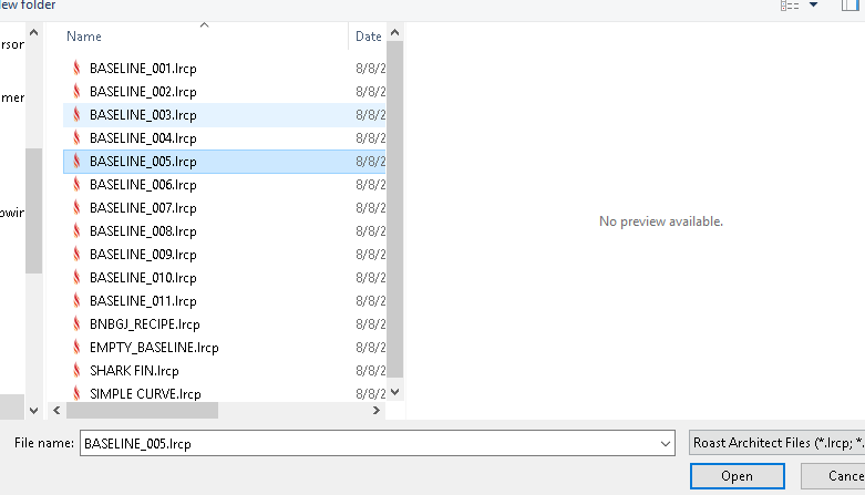 Select a file to upload to the screen. The files will automatically be sorted by extension type to their correct folders. Profiles will be sorted into their correct sub-folders based on their type (Roast Profile or Burner Recipe).