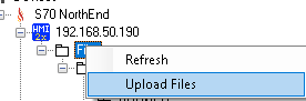 Files get uploaded to the HMI screen by performing a right click on the HMI Files folder to show the folder options menu. Select Upload Files which will open a Open File dialog form.