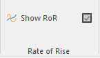 Once selected, the Rate of Rise curve is shown in dark blue. A secondary axis on the right-hand side of the graph will appear and shows the units of the Rate of Rise curve.